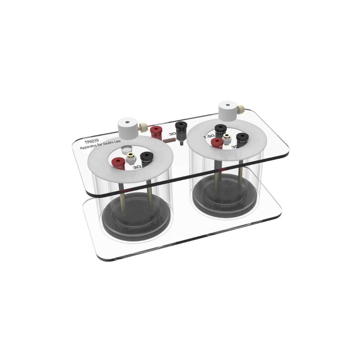 Zestaw do doświadczenia nad prawem Joule’a, służący do badania zależności cieplnego efektu przepływu prądu od natężenia prądu, oporu przewodnika oraz czasu zasilania.