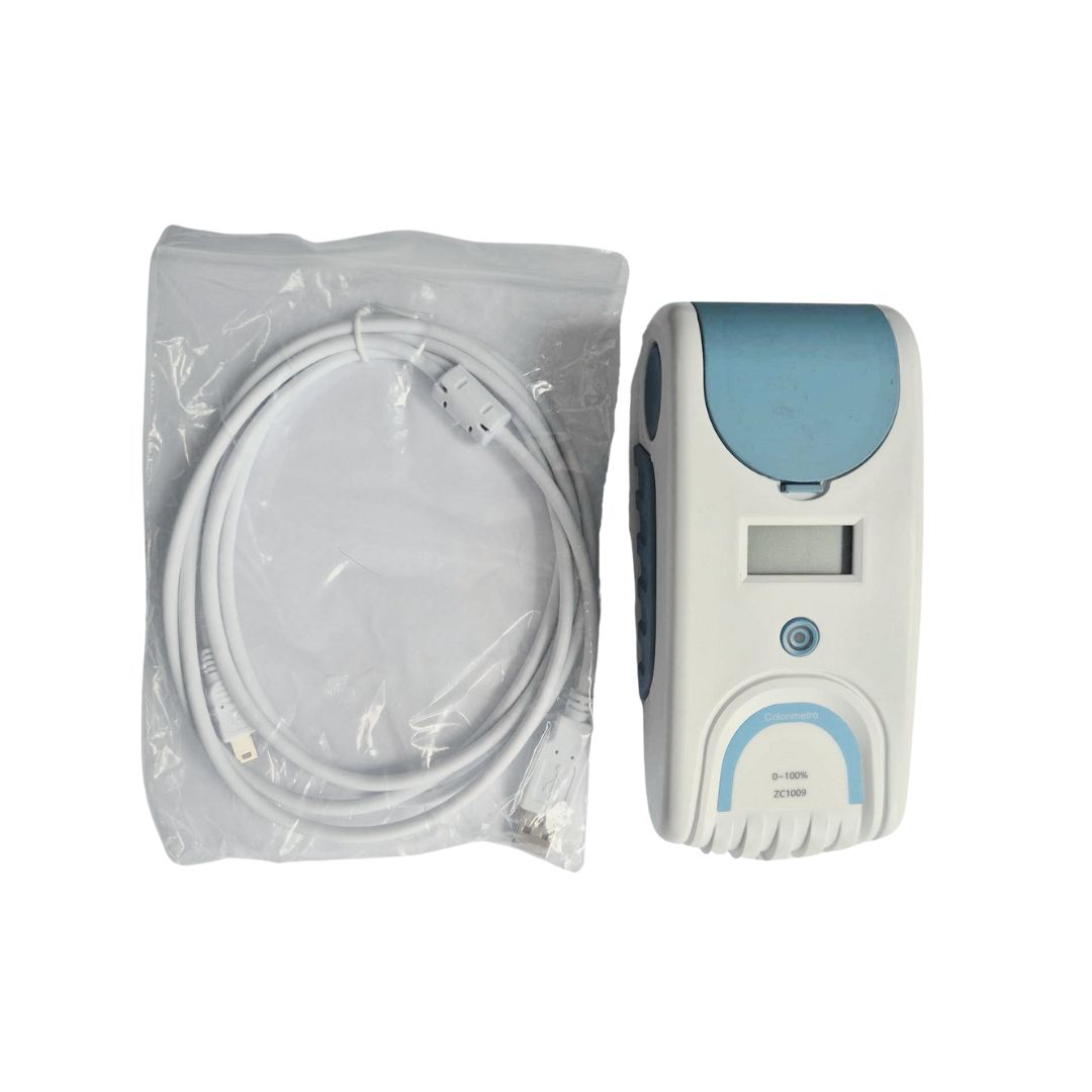 ZC1009: kolorymetr USB; 430/470/520/645 nm; 0–100% T; 0,1% rozdz.; ±2% F.S.; zapis w czasie rzeczywistym; do Beera-Lamberta, kinetyki, wit. C.