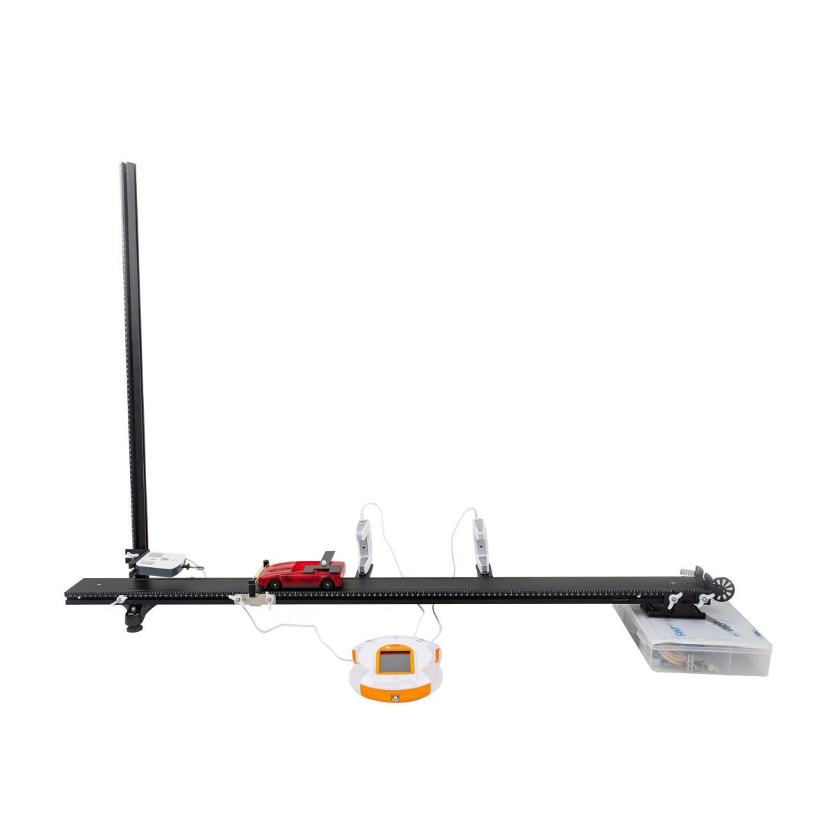 Konfiguracja: tor; podstawa; pręt wsporczy; wózki ×2; wsporniki L ×4; uchwyt bloczka z fotobramką ×1; wspornik podtrzymujący tor; ciężarki 2 g ×5; ciężarek z hakiem 10 g ×1; ciężarek z hakiem 20 g ×1; ciężarek z hakiem 50 g ×1; ciężarki 50 g ×4; karabińczyki ×2; sznurek ×2; bariery świetlne U ×2; małe wiaderko ×1; element tłumiący; wyrzutnia ×1; głowica zderzeniowa do czujnika siły ×1; głowica zderzeniowa do wózka ×1; poziomica T ×1; sprężyny ×2; gumka ×1; nożyczki ×1; zapałki ×1; klocek drewniany ×1; płytka z kratką (grating plate) ×1; koła do wózka ×2; śruba imbusowa (M6×100 mm) ×1; śruby imbusowe (M6×20 mm) ×12; śruby radełkowane (M4×10 mm) ×2; śruby radełkowane (M6×12 mm) ×4; nakrętki motylkowe (M6) ×12; śruby motylkowe (M4×35 mm) ×2; śruby z łbem walcowym z gniazdem (M6×20 mm) ×2; klucz imbusowy ×1. Wymiary: 1200 mm × 880 mm. Masa: 3,541 kg.