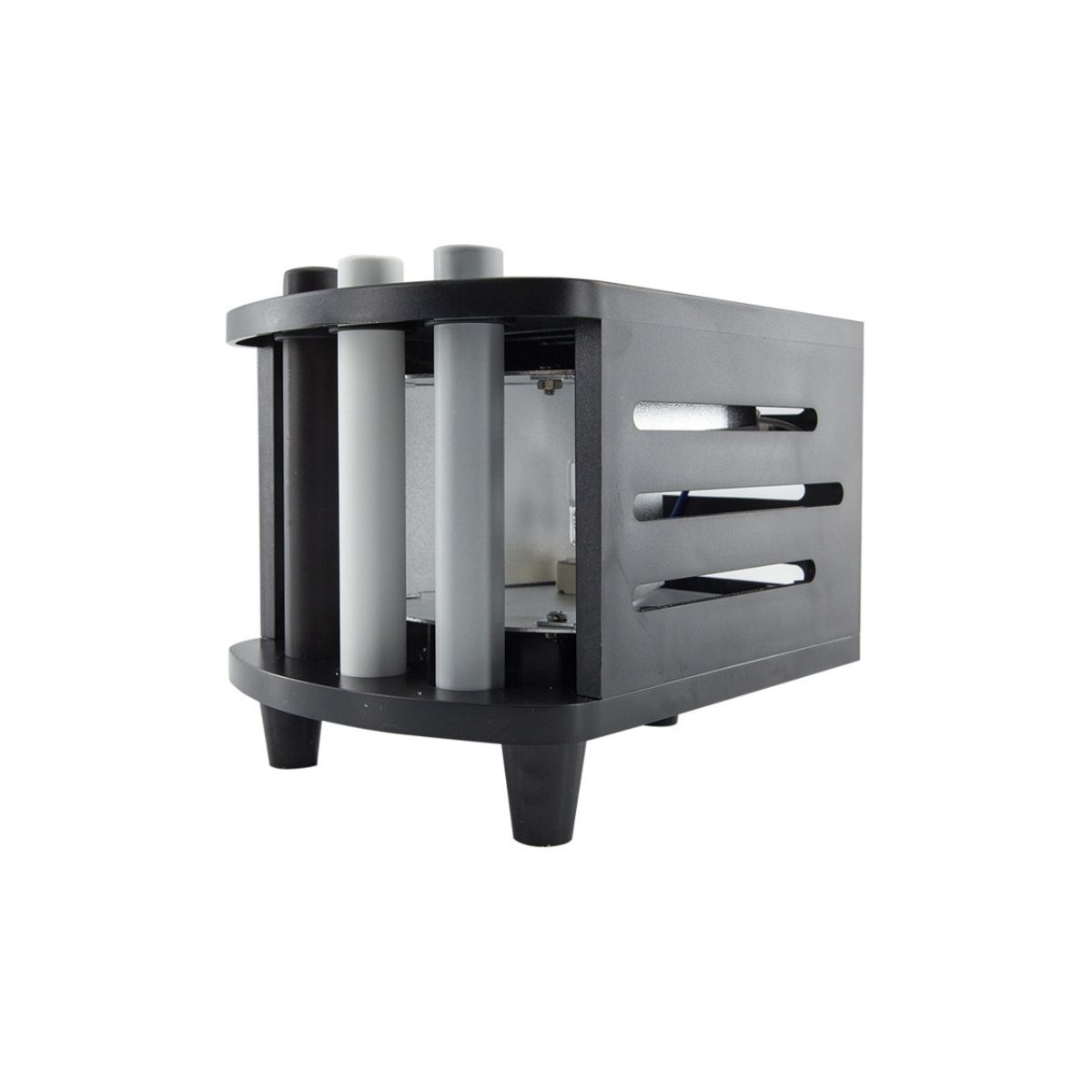 Konfiguracja zestawu: obudowa urządzenia, lampa halogenowa, metalowa płyta reflektora, 3 pręty metalowe (czarny, srebrny, biały), zasilacz. Wymiary: 120 mm × 150 mm × 130 mm. Masa: 0,442 kg.